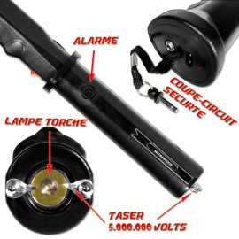 Matraque Electrique avec Alarme et Lampe torche. Coupe-circuit de sécurité