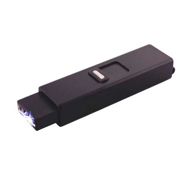 Sa forme, son apparence et même son poids ne laissent rien deviner de la fonction réelle de ce mini shocker de poche. Simple et discret on prendrait vraiment ce taser légal pour une clef 64 Go ou un lecteur MP3 qui peut se transformer également en porte-clefs !